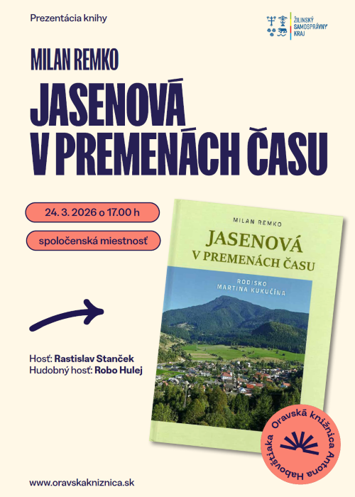 Oravská knižnica Antona Habovštiaka a autor Vás srdečne pozývajú na prezentáciu novej knihy Milana Remka Jasenová v premenách času.