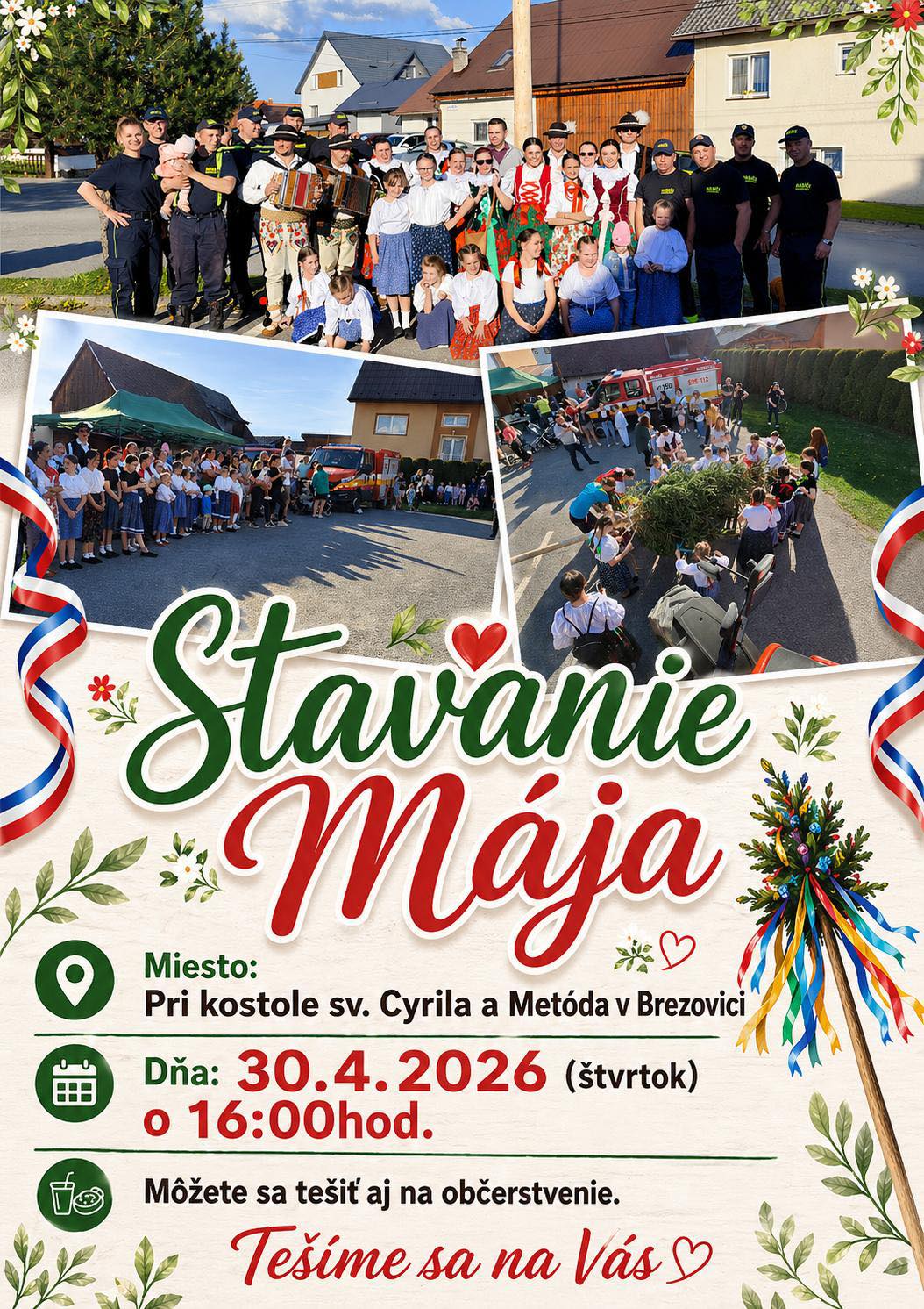 Pozývame Vás na stavanie mája 30.04.2026 (štvrtok) o 16:00 hod pri kostole sv.Cyrila a Metóda v Brezovici
