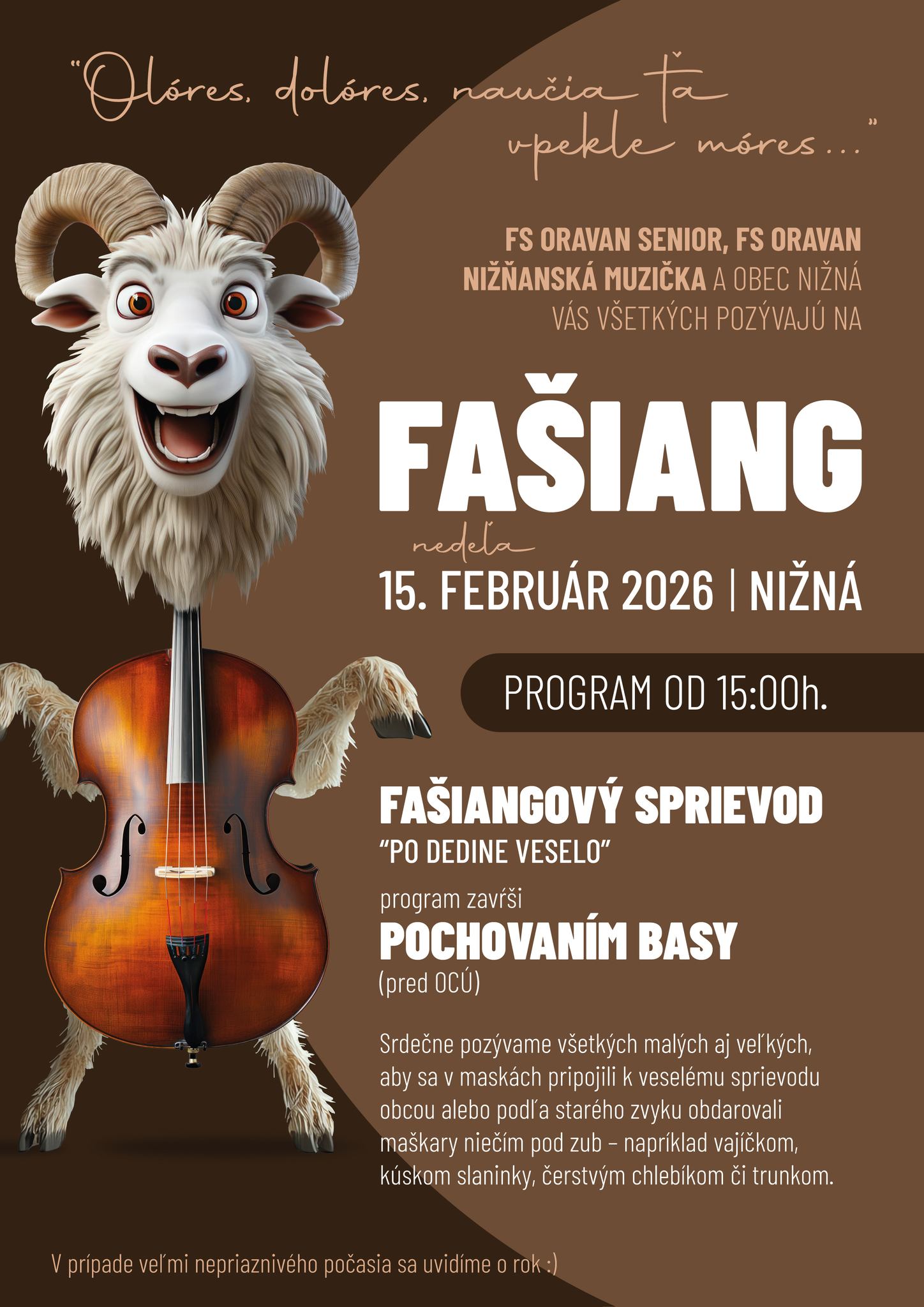 FS Oravan Senior, FS Oravan, Nižňanská muzička a obec Nižná vás srdečne pozývajú na tradičný fašiang v Nižnej, ktorý sa uskutoční v nedeľu 15. februára 2026.