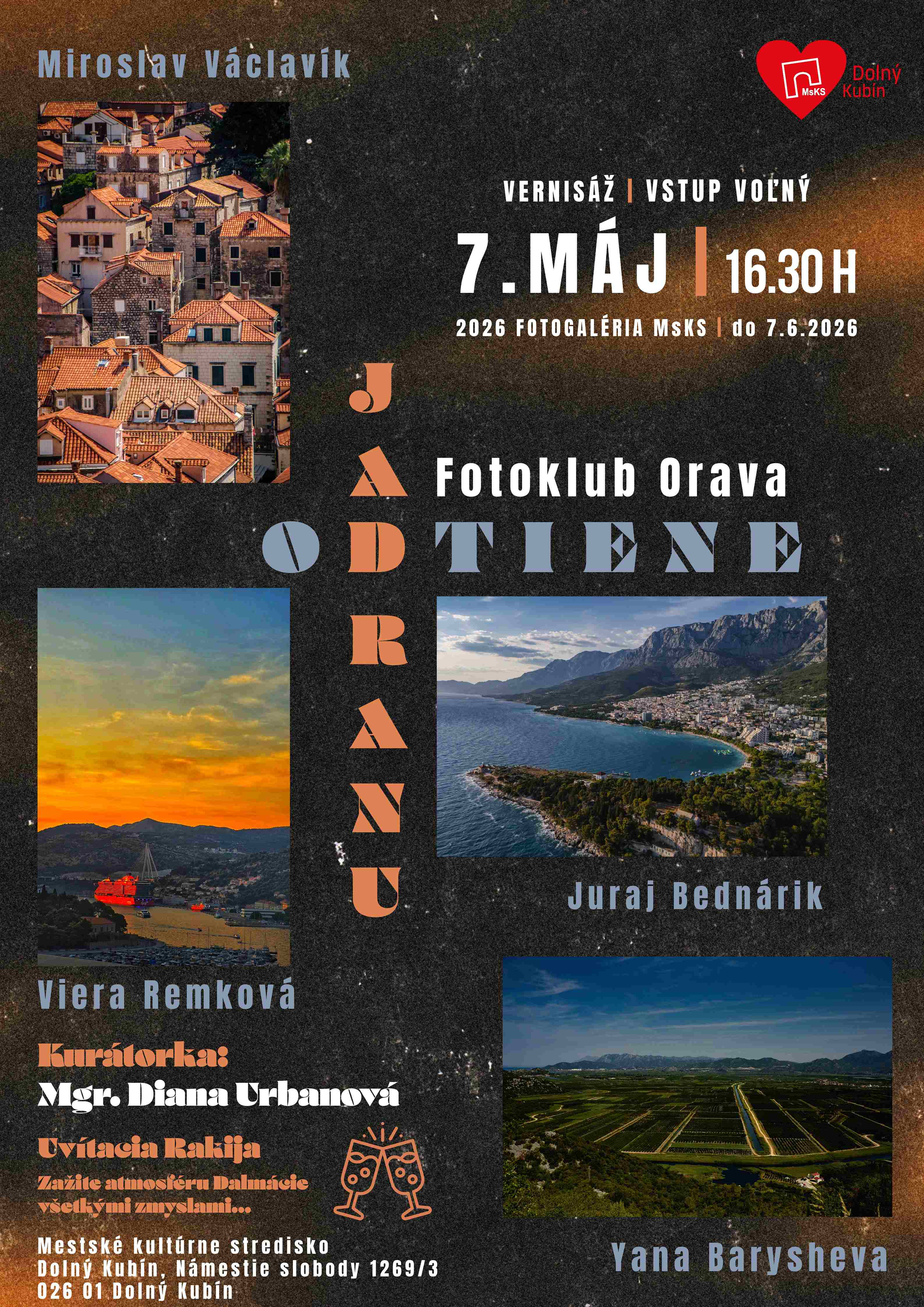 Mestské kultúrne stredisko v Dolnom Kubíne a Fotoklub Orava vás srdečne pozývajú na vernisáž výstavy fotografií s názvom „Odtiene Jadranu“.